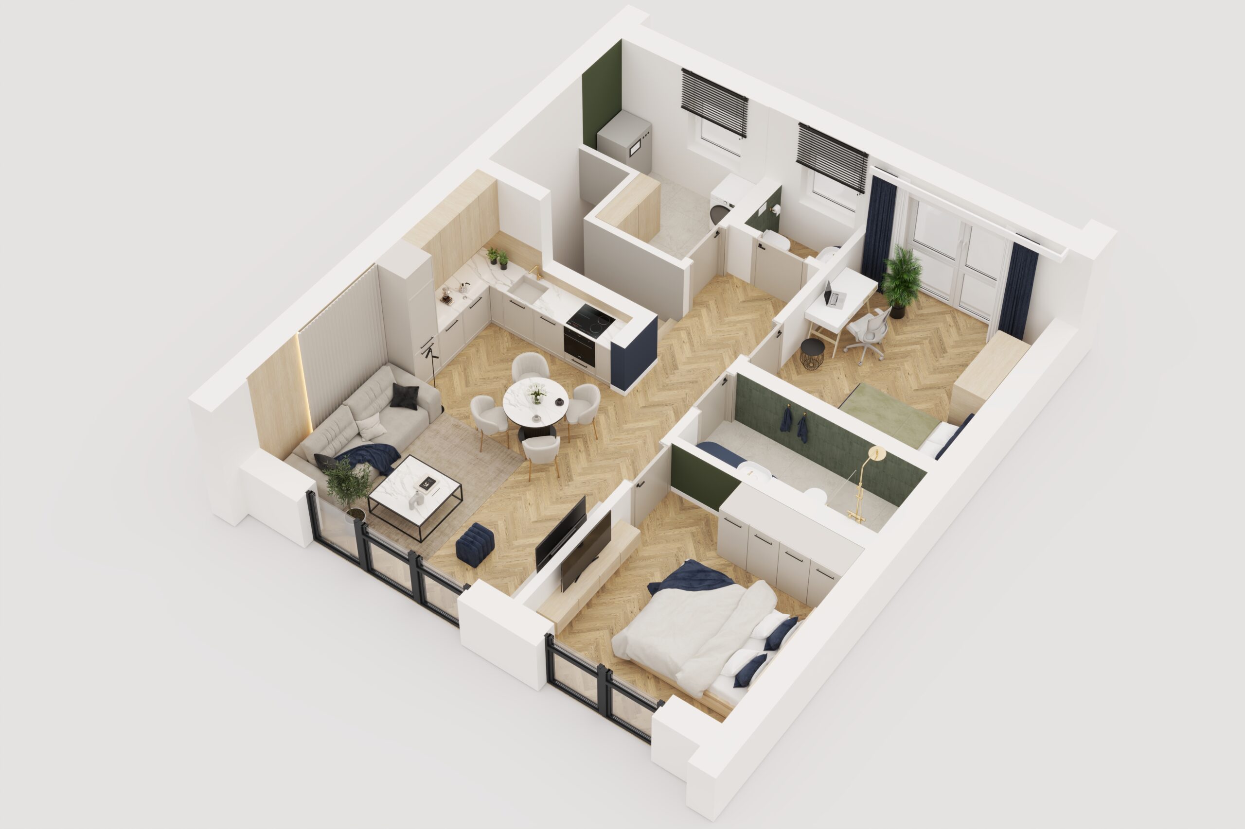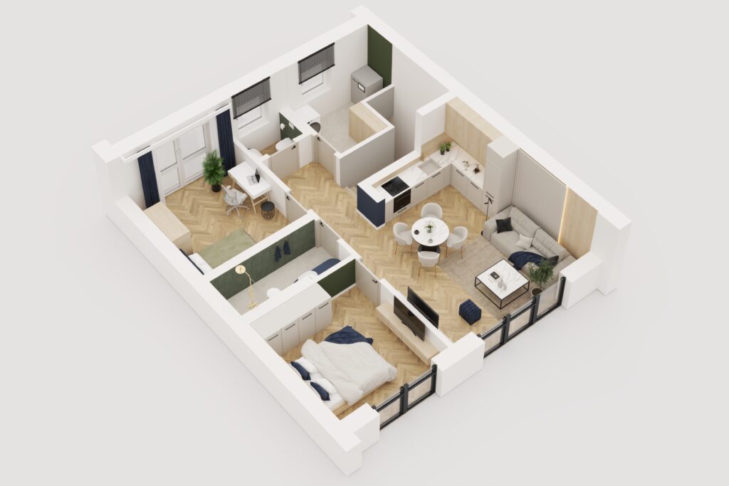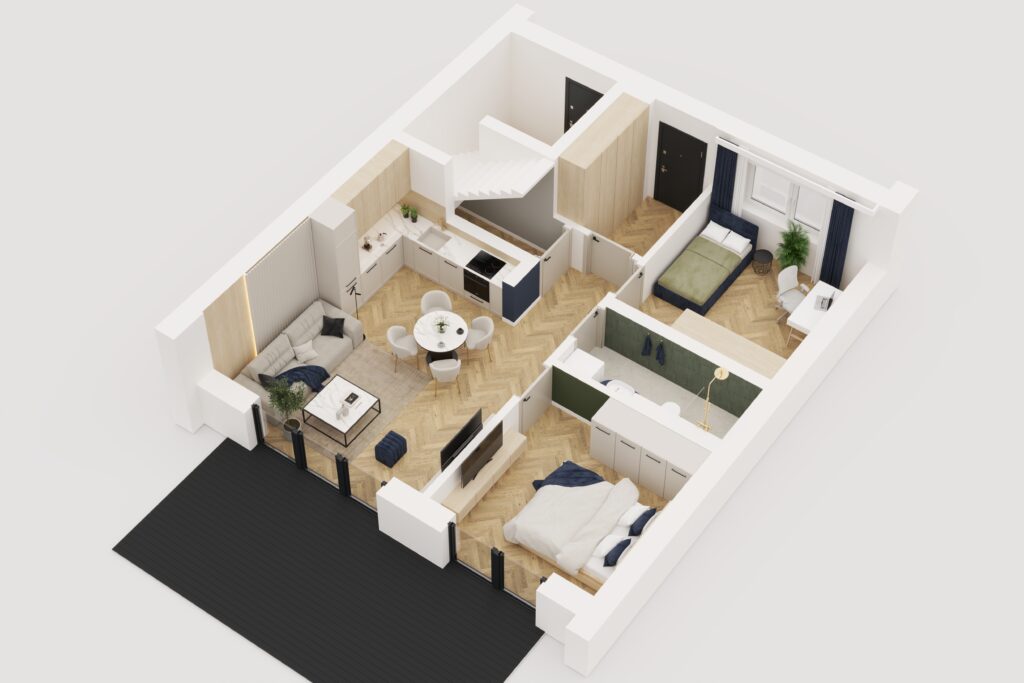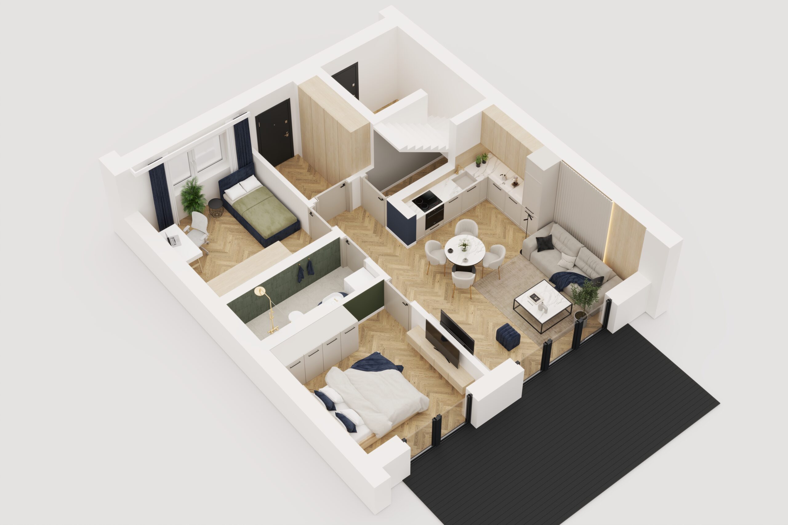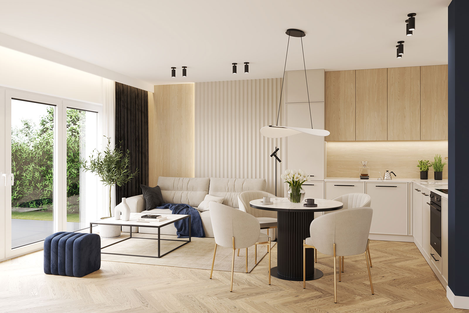 Mieszkania zlokalizowane na parterze posiadają bezpośrednie wyjścia do prywatnych ogródków, które stanowią naturalne przedłużenie przestrzeni mieszkalnej.