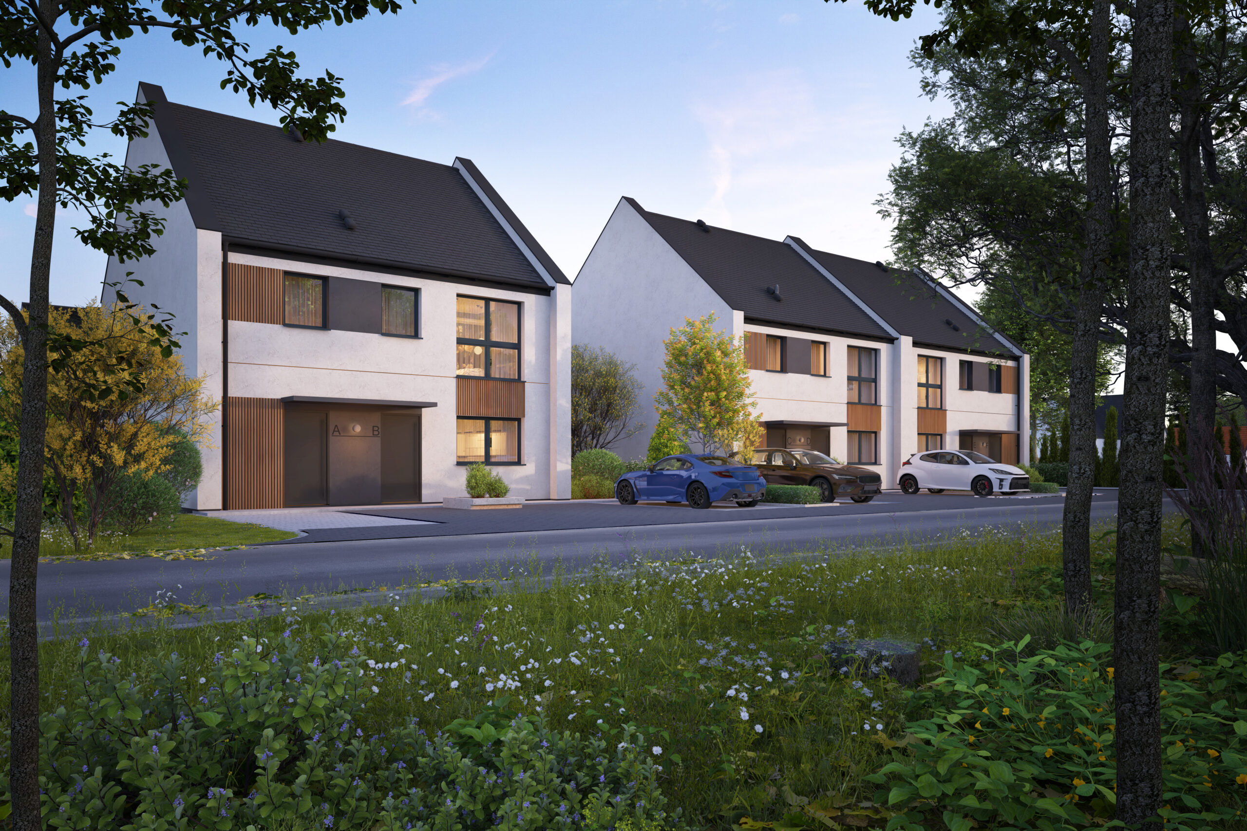 Zespół budynków dwulokalowych w zabudowie bliźniaczej, w którym zastosowano powtarzalne, sprawdzone rozwiązania projektowe oraz czytelny układ funkcjonalny mieszkań.