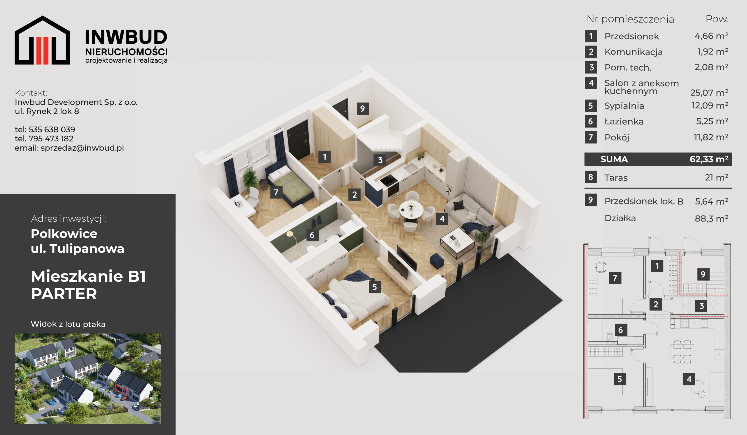 | 62,33m2 | 88,3m2 | Parter | 3 | 525 000,00PLN | Dostępne | Pobierz | ||