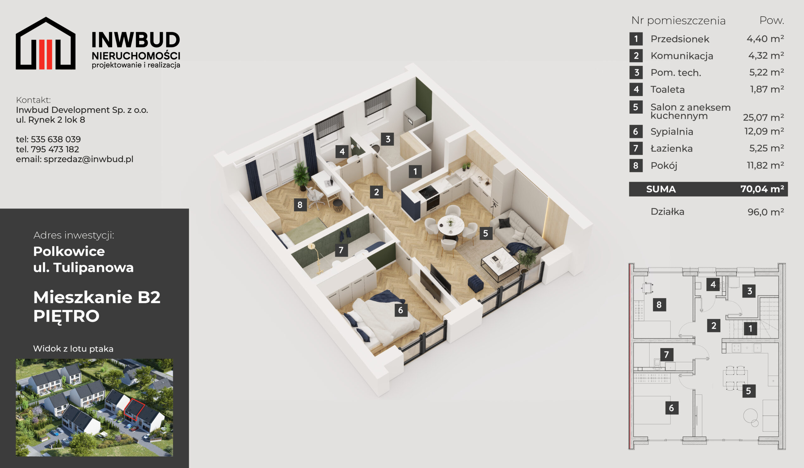 | 70,04m2 | 96,0m2 | Piętro | 3 | 560 000,00PLN | Dostępne | Pobierz | ||