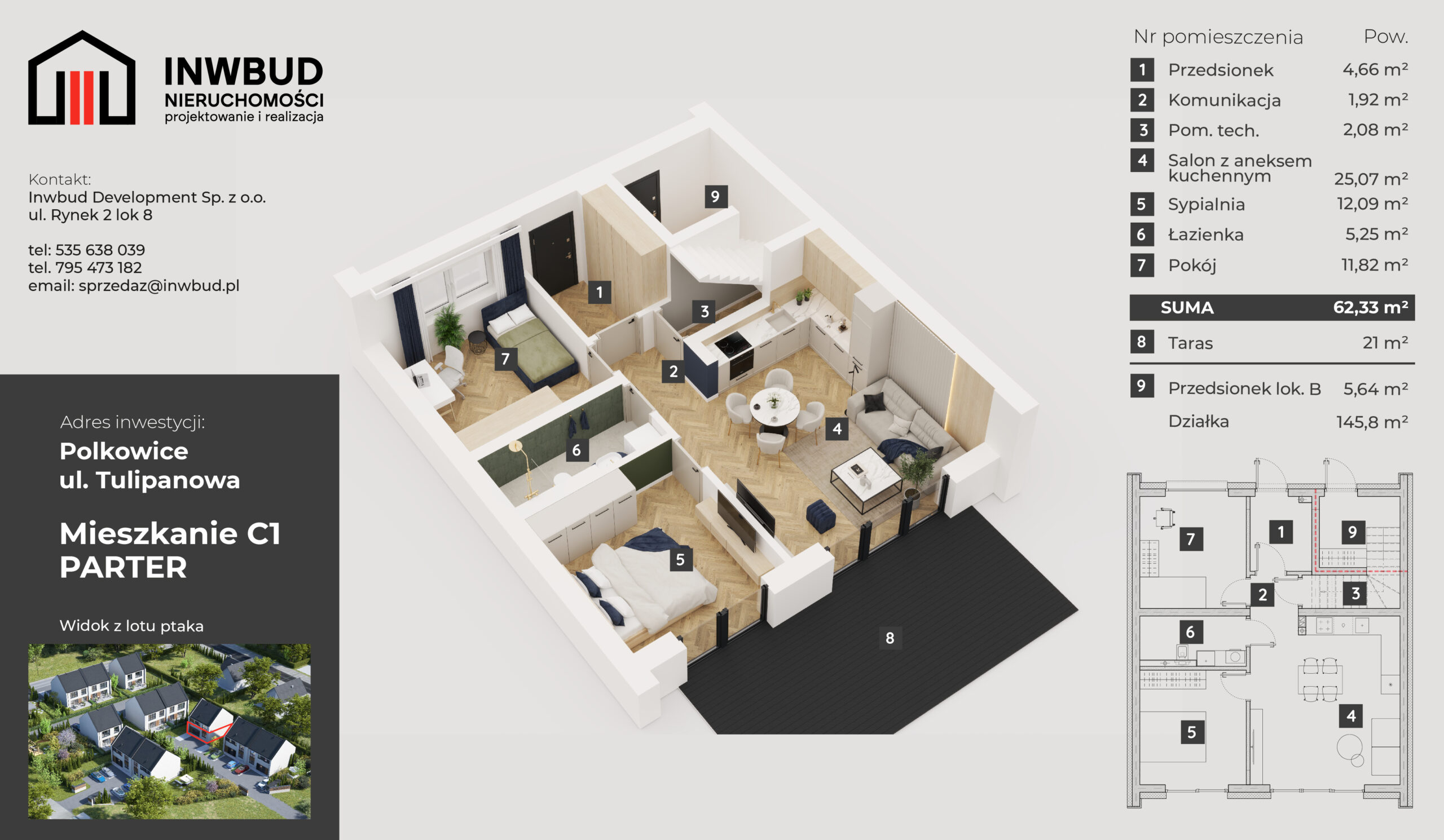 | 62,33m2 | 145,8m2 | Parter | 3 | 550 000,00PLN | Dostępne | Pobierz | ||